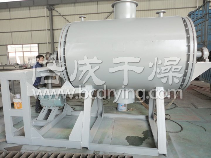 本機(jī)是一種新穎臥式間歇式真空干燥設(shè)備,濕物料經(jīng)傳導(dǎo)蒸發(fā),帶有刮板攪拌器不斷清除熱面上的物料,并在容器內(nèi)推移形成循環(huán)流,水份蒸發(fā)后由真空泵抽出。